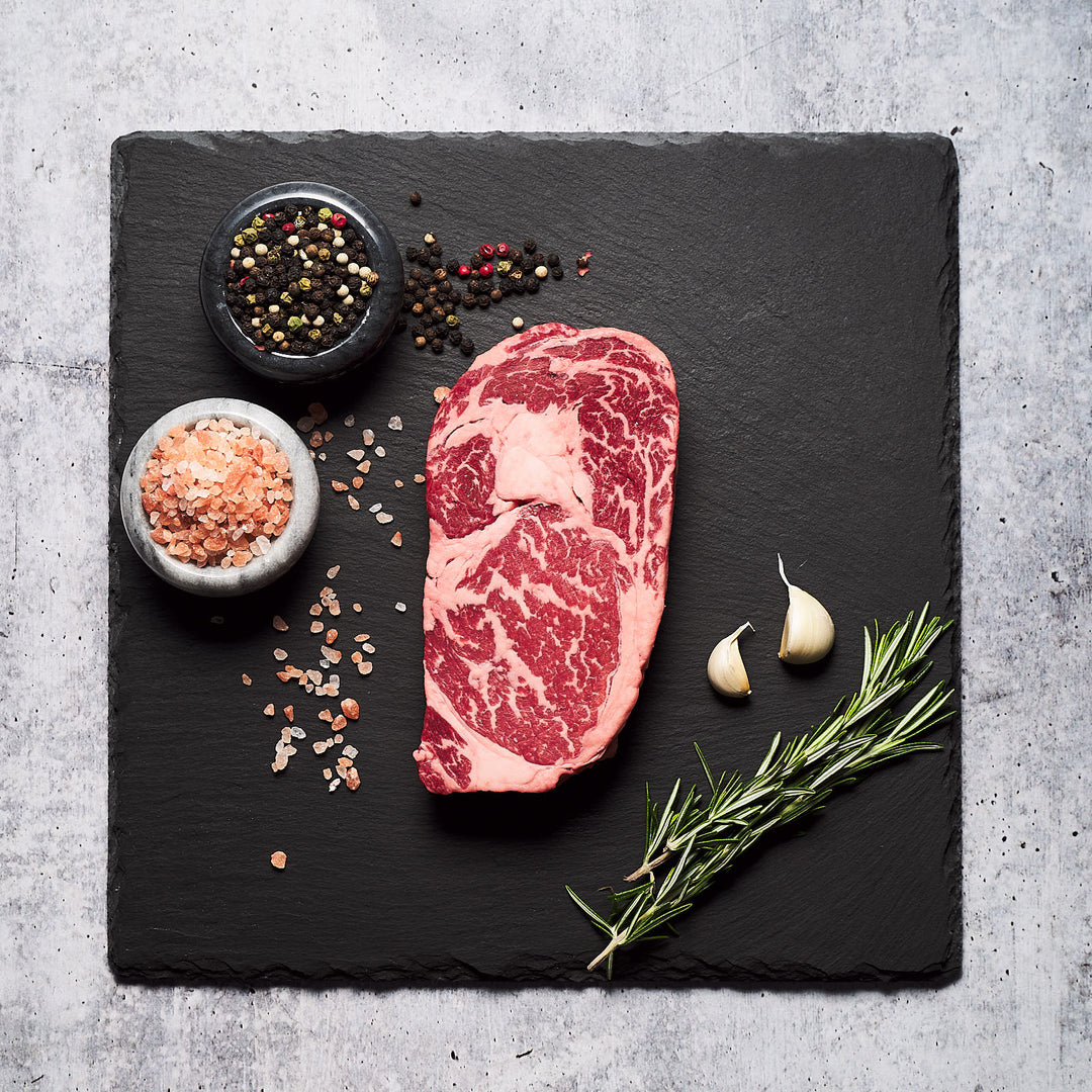 Beef ribeye steaks have lots of natural fat running through them. Our USDA Prime Ribeye grading comes from the exquisite marbling that gives them even more flavor than other cuts. The ribeye’s opposite steak would be the filet mignon because it’s the leanest cut.